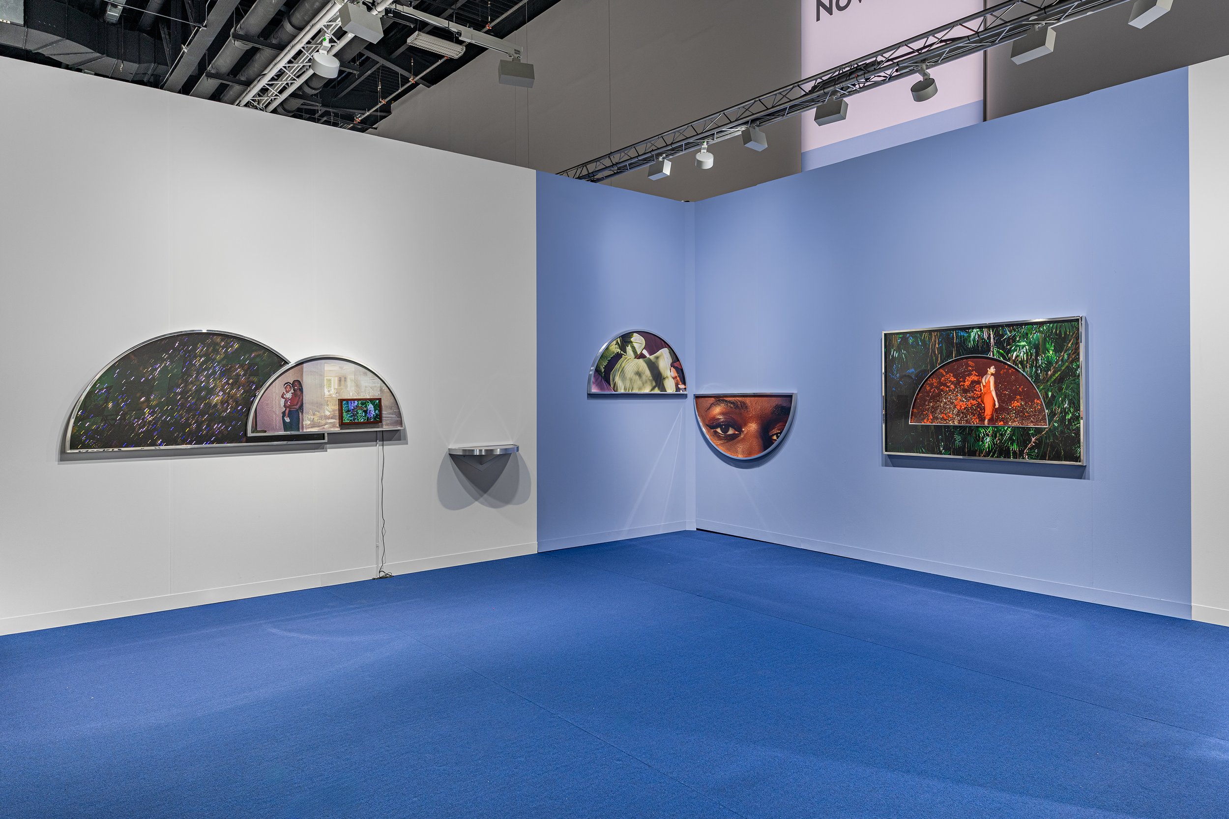 Installation View of Ou sonje nou/ nou manke ou, 2022 at James Fuentes Gallery in OffSight, an exhibition curated by Didier William, July 19-August 12, 2022 —>